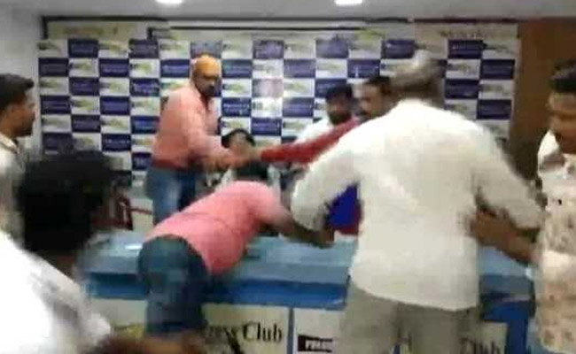 Dalit body chief Karne Srisailam attacked during a press conference in Hyderabad