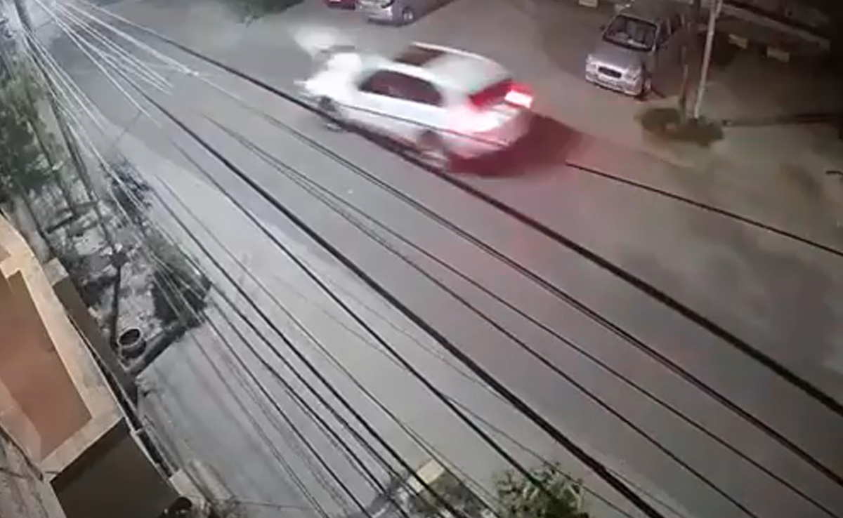 The CCTV footage shows the man slowing down his scooter while the car comes from the opposite direction and rams into the two-wheeler.