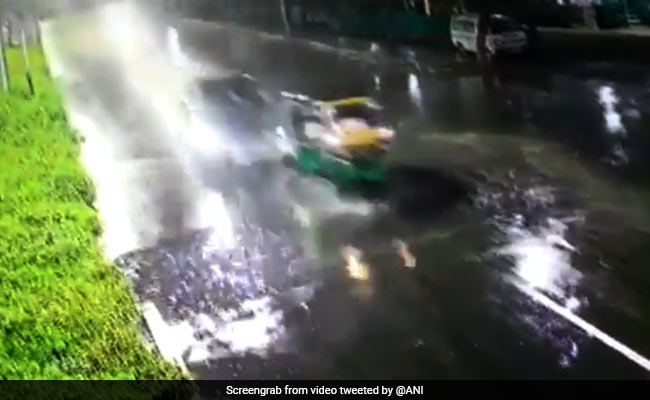 The impact from behind sent the autorickshaw spinning to the left of the road where water had accumulated because of the rain.