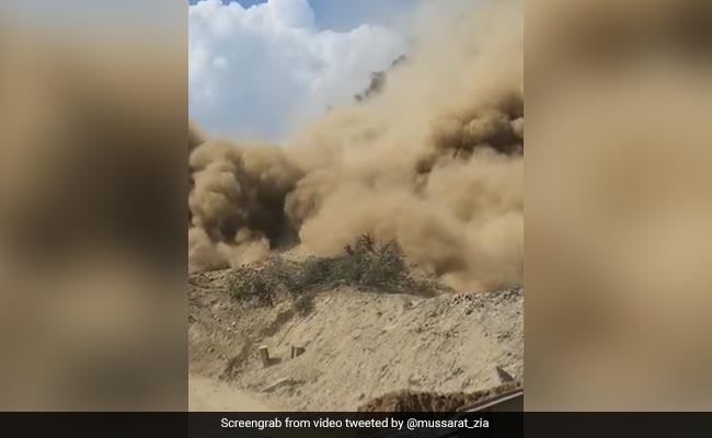 The officials said at least two vehicles were damaged in the landslide which completely blocked the road.