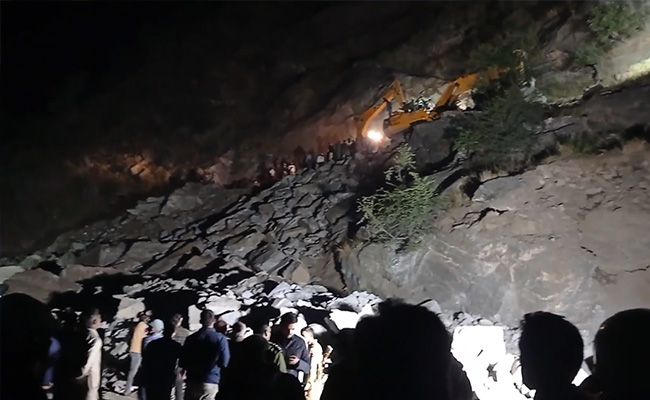 Rescuers at the site of the landslide at Jammu and Kashmir's Kishtwar