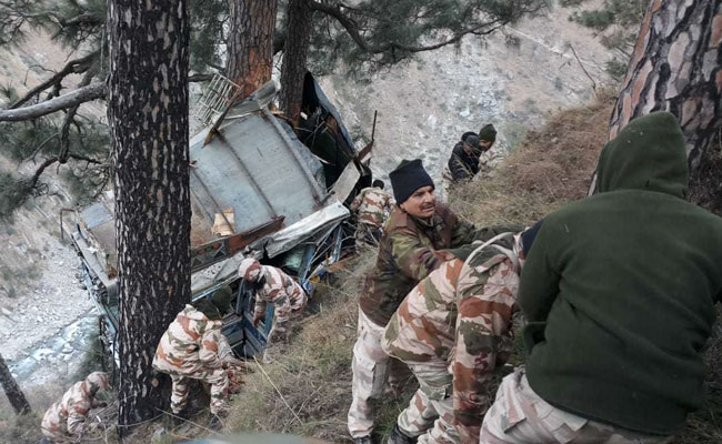 A team of rescue personnel comprising army, police and local volunteers are site of the accident. Images showed rescue personnel trying to pull the bus up using ropes.