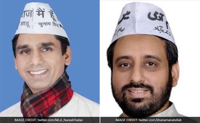 Two AAP lawmakers, Amanatullah Khan and Naresh Yadav (left) were arrested on Saturday
