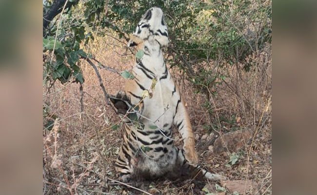 According to forest officials, they were alerted to a male tiger being found dead in the Vikrampur forest on Tuesday night. When the officials reached the spot on Wednesday morning, they found the animal hanging from a tree with a clutch wire (usually found in vehicles) around its neck.