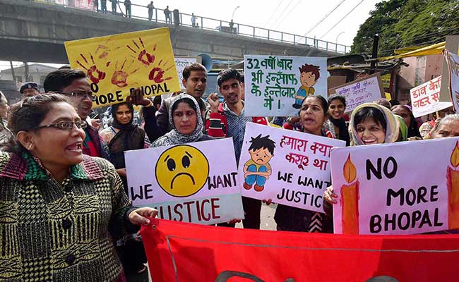 Survivors of 1984 Bhopal Gas tragedy today staged a protest in front of the now-defunct Union Carbide factory in Bhopal on the 32nd anniversary of the world's worst industrial disaster.