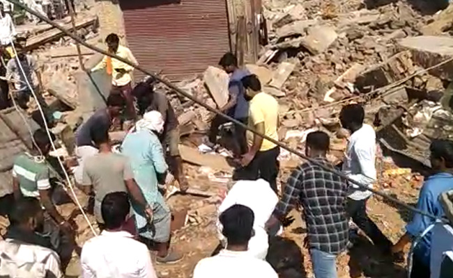 Four people, three of them from one family, died and six others were injured after an explosion demolished a house where firecrackers were stored in a godown, at Banmor Nagar in Morena district of Madhya Pradesh on Thursday.
