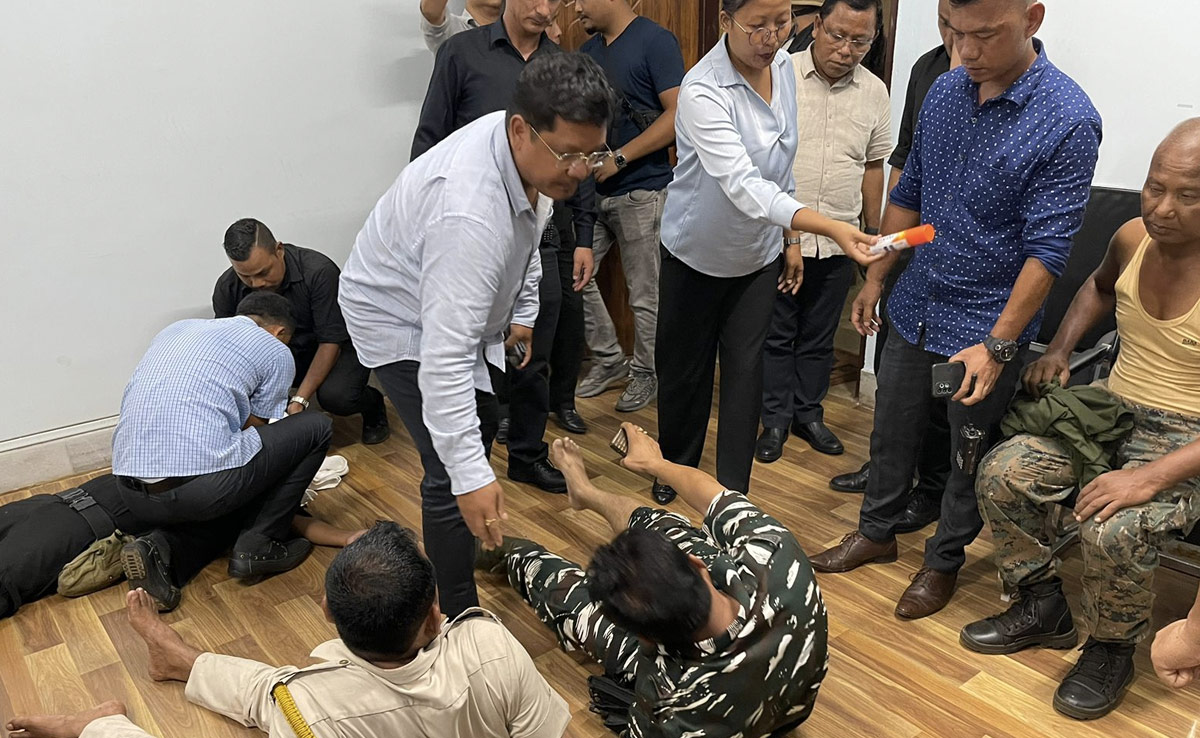 Trouble started this evening when hundreds of people gathered outside the Chief Minister's office and started throwing stones. Five security personnel were injured in the attack. They were brought inside Mr Sangma's office.