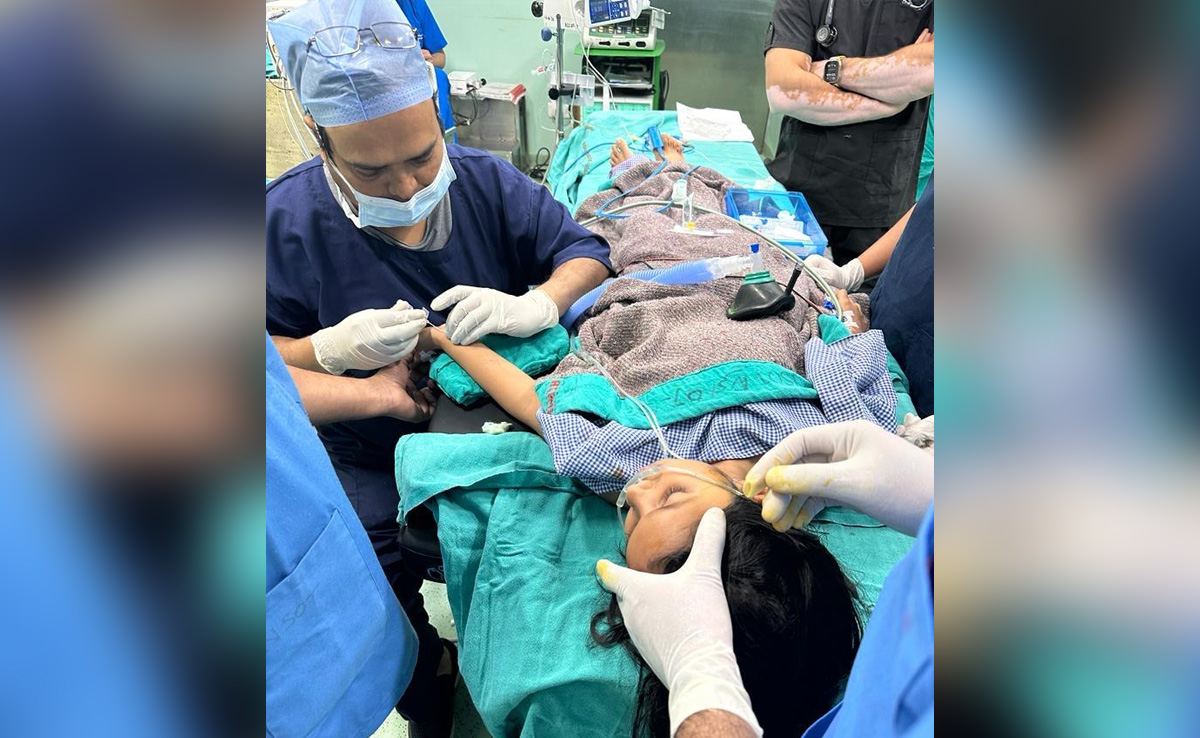 The surgery lasted three hours, including time taken for giving local anaesthesia to the child by neuroanaesthetists.