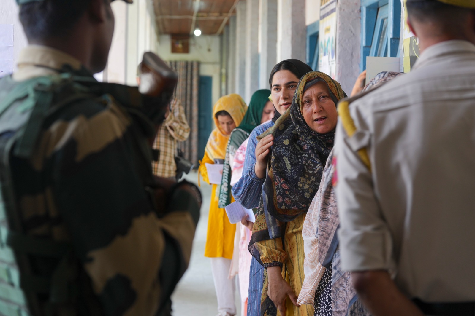 Twenty-year old Trishika and her grandmother Sarveshwari Devi voted at a polling station in the border area of Akhnoor.