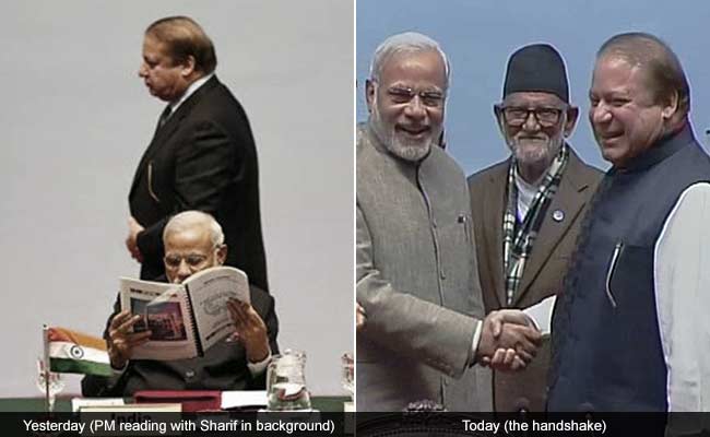 The pair had cold-shouldered each other yesterday. They barely exchanged pleasantries at a dinner last night; before that, as Mr Sharif got up to address the summit, Mr Modi was seen pointedly reading a pamphlet.