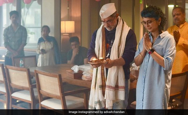 The photos from the ceremony, posted on Thursday, are now viral. They also show Aamir Khan's ex wife Kiran Rao performing aarti together with the actor. Several staff members are also seen taking part in the puja.