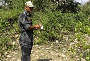 A policeman inspects the spot where the Swiss national was gang-raped