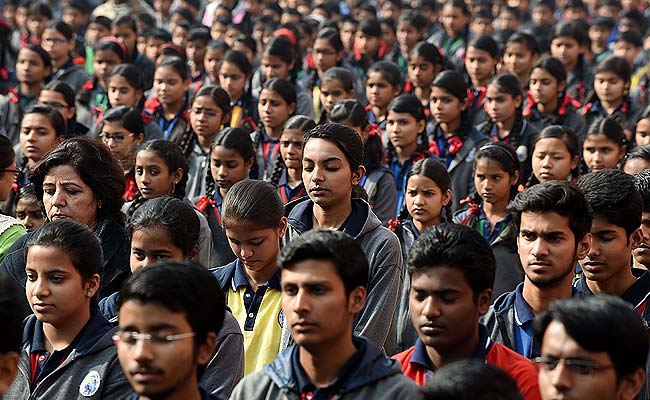Schoolchildren in New Delhi pay tribute to Pakistani schoolchildren killed in a Taliban attack in Peshawar (Agence France-Presse photo)