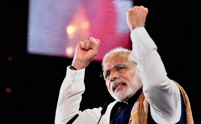 Prime Minister Narendra Modi addressing the Indian community at Wembley stadium in London on Friday, November 13, 2015. (Press Trust of India photo)