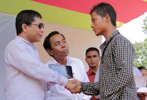 Chief Minister Mukul Sangma distributes tablet PCs to students