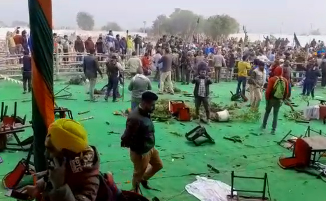The "kisan mahapanchayat" had been called to explain what the government says are the benefits of the three farm laws passed in September. With BJP leaders and ministers facing severe protests across the state over the farm laws, arrangements were made for heavy security and a number of police personnel were deployed at the village ahead of the meeting.
