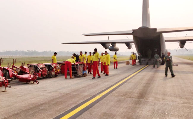 - Personnel of the Odisha Fire Service and the National Disaster Response Force brought the heavy pumps from Bhubaneswar in Odisha in a Lockheed Martin C-130J Super Hercules of the Air Force. The mission to airlift the equipment came three weeks after the incident.