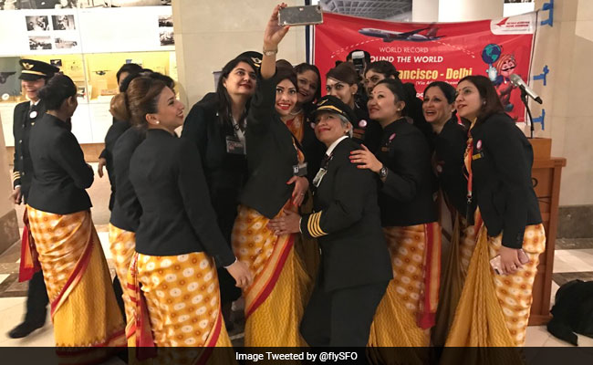 From holding a record for flying a non-stop flight for 17 hours last year, to a flight carrying an all women crew this year, Air India flies high as it is to set a new record for the first round-the-world flight staffed entirely by women. Air India's Boeing 777 travelled from Delhi to San Francisco and back with an all-female crew last week, the first time such a flight has circumnavigated the globe.