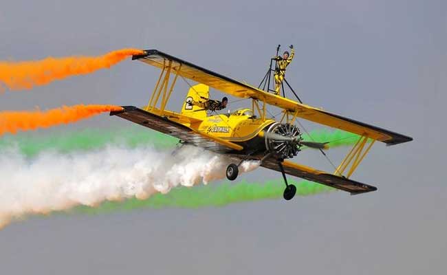 Skycat Wingwalkers perform during the inauguration of Aero India show.