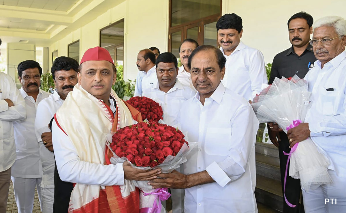 Samajwadi Party chief Akhilesh Yadav took a special flight to Hyderabad to meet Telangana Chief Minister K Chandrasekhar Rao today. On the face of it, it was a lunch meeting. But the timing was crucial - a day after Rahul Gandhi's declaration that the Congress will not ally with any party close to the state's ruling Bharat Rashtra Samithi and the crisis in the Opposition over the events in Maharashtra.