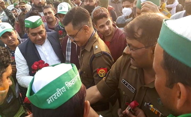 Even as tension soared in Delhi amid the farmer protest that took a turn for the worst in the heart of the city, heartwarming scenes were witnessed at the Chilla border point between the national capital and Uttar Pradesh where the agitating crowd exchanged roses with state police personnel.