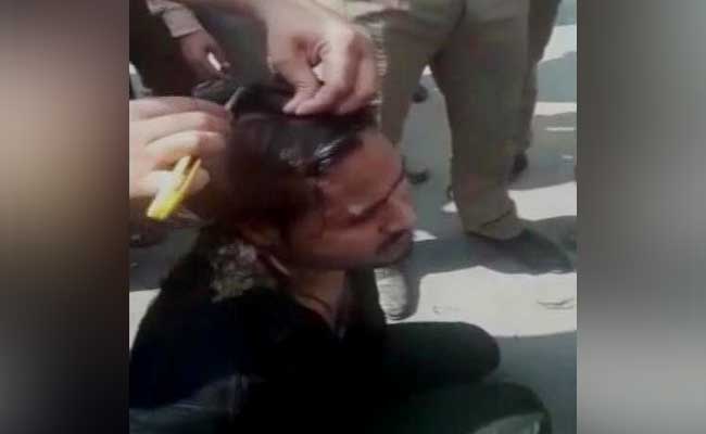 "He has done a wrong thing...he will not do it the next time," a voice is heard in a video that shows a man sitting on the ground, his head being shaved in the presence of police constables from an "anti-Romeo" squad in Shahjahanpur in eastern Uttar Pradesh.