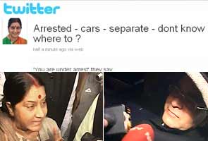 As she was led away from the Jammu airport where she had been detained for several hours, Sushma Swaraj tweeted, "Arrested - cars - separate - dont know where to?" The answer became clearer as a police convoy zipped down a highway - she was being taken to Madhopur on the Punjab border. Here, Ms Swaraj and Arun Jaitley held a rally on Tuesday morning - before attempting to cross, along with thousands of BJP youth activists - back into J&K.
