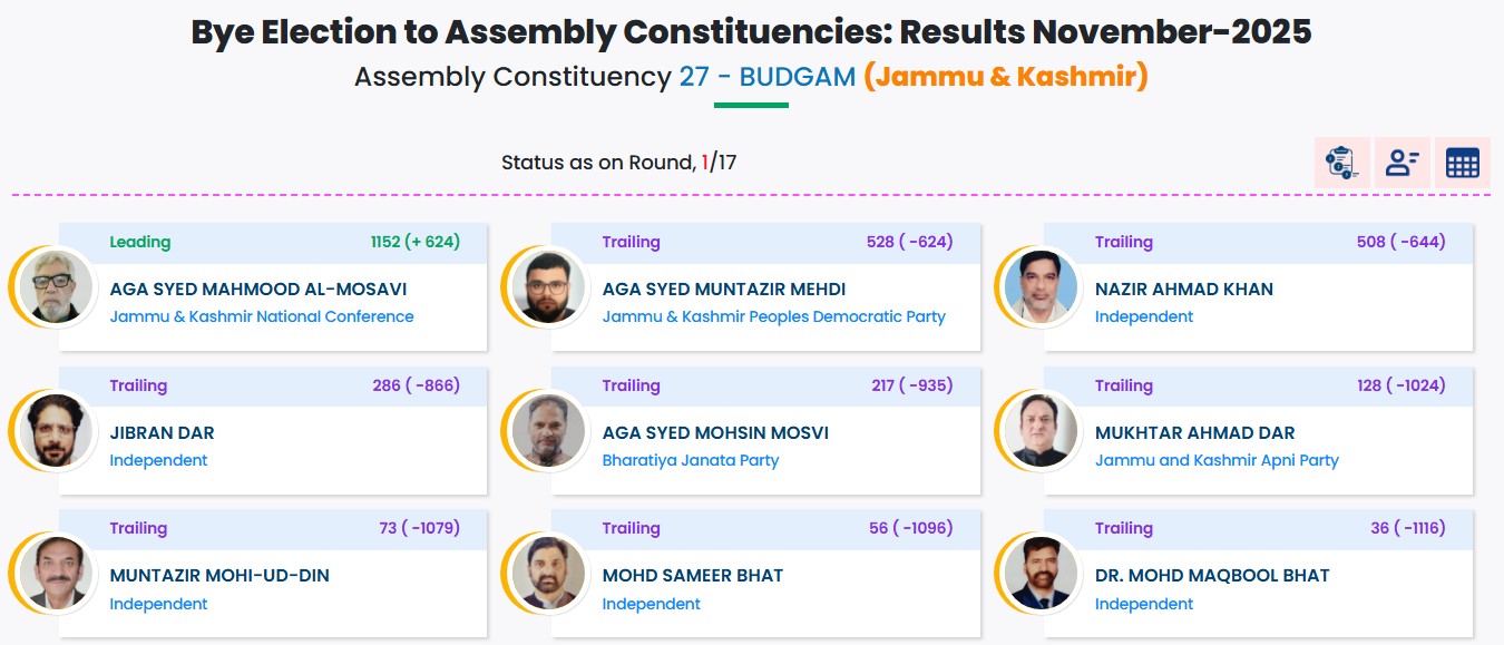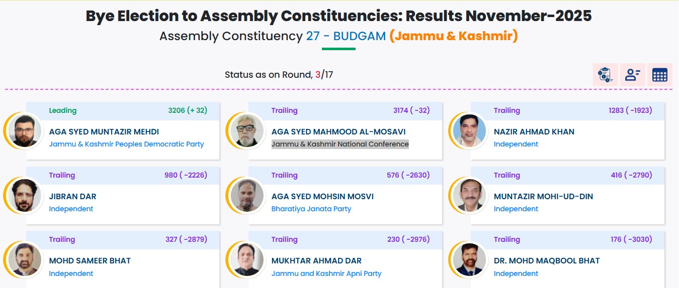 This development places the earlier frontrunner, Aga Syed Mahmood Al-Mosavi of the Jammu & Kashmir National Conference (NC), and the independent candidate Nazir Ahmad Khan, into trailing positions.