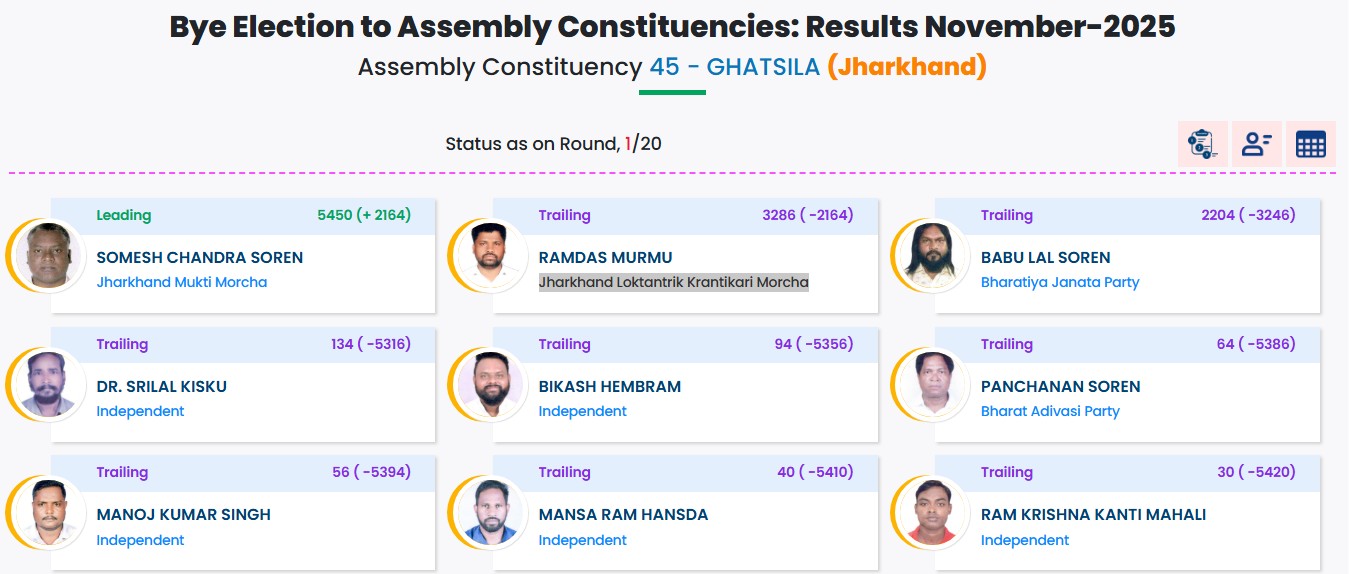 The Jharkhand Mukti Morcha (JMM) has taken a strong lead in the vote counting for the Ghatsila Assembly by-election in Jharkhand, confirming an early advantage for the regional party.