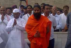 Ramdev was accompanied by his close aide Acharya Balkrishna, while Team Anna members Arvind Kejriwal and Kiran Bedi accompanied Hazare. The association with Baba Ramdev had in the past created ripples in Team Anna with a section remaining opposed to have any truck with the yoga guru as he is facing corruption charges.