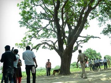 Police at the site of the murder of two teenage cousins in Badaun, UP. Associated Press