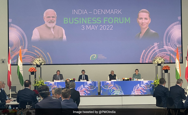Later, Foreign Ministry spokesperson Arindam Bagchi tweeted pictures of PM Modi and his Danish counterpart Mette Frederiksen participating in the India-Denmark Business Forum with top business leaders from the two countries, and also a video of the two leaders being greeted after the meeting by Indian community members.