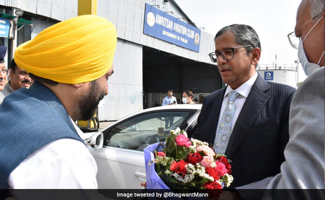 Punjab Chief Minister Bhagwant Mann on Wednesday welcomed Chief Justice of India N V Ramana during his visit to the state here.