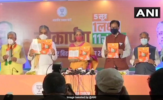 The ruling BJP today promised 19 lakh jobs and free coronavirus vaccination for all in its manifesto for the Bihar election starting next week. The party also stressed that ally Nitish Kumar will be Chief Minister for the next five years.
