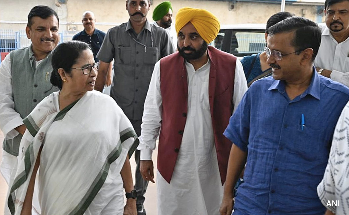 As part of a nationwide tour to garner support for his fight against the Central ordinance to control appointments and transfer of bureaucrats in Delhi, Arvind Kejriwal, along with his party's CM for Punjab Bhagwant Mann, met Mamata Banerjee in Kolkata on Tuesday.