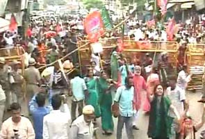 The women's wing of the BJP demonstrated in the streets today. Yesterday, the Congress defied government orders to hold its "nyaya" or justice march. The BJP workers were forced into buses by the police and will be kept in police custody till this evening.