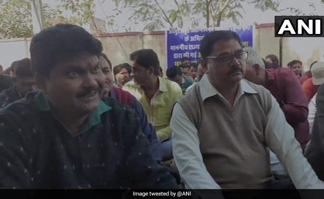 Sitting with his fellow colleagues in protest, Mr Meena said, "We demand justice, police must take action against the minister."