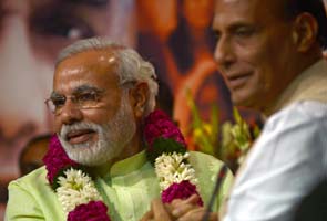 BJP president Rajnath Singh and Narendra Modi after the announcement today.