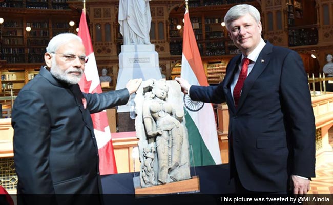 The sculpture, known as 'Parrot Lady', was handed over by Canandian PM Harper to PM Modi in accordance with the 1970 UNESCO Convention.
