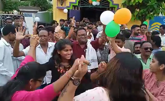 Celebrations broke out outside NDA Presidential candidate Droupadi Murmu's two-storey house in Odisha's Rairangpur as trends from the counting of votes placed her comfortable ahead of rival Yashwant Sinha. A group of people were seen dancing outside Ms Murmu's house. Some men held coloured balloons and young girls held hands and danced in circles. The joyous celebrations are expected to continue as counting progresses.