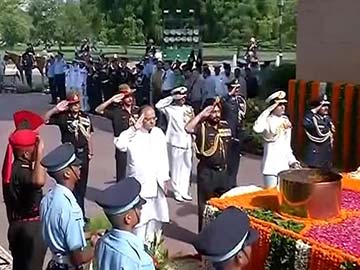 Defence Minister Arun Jaitley pays homage to Kargil martyrs in front of Amar Jawan Jyoti at India Gate.