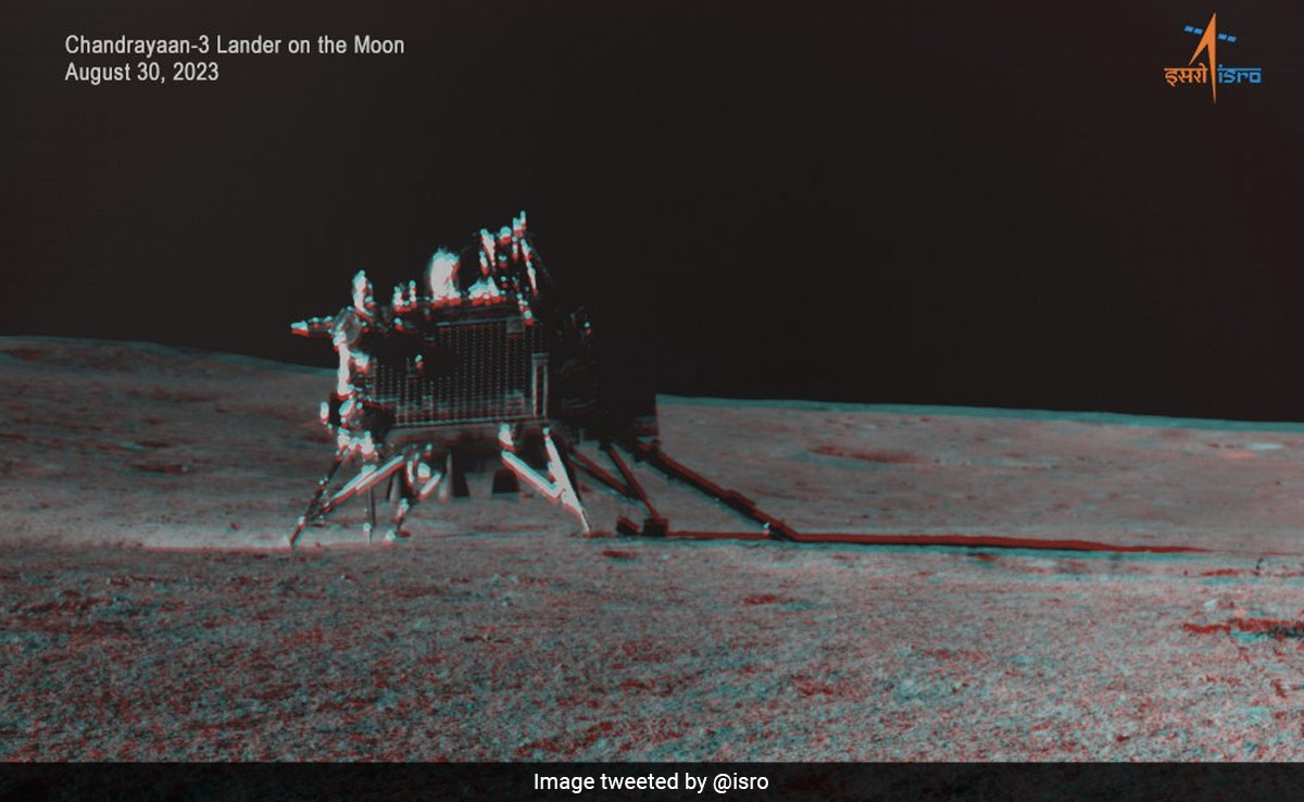 The Indian Space Research organisation on Tuesday put out a 3-dimensional ‘anaglyph' image of the Chandrayaan-3 Vikram lander from the south pole of the Moon.
