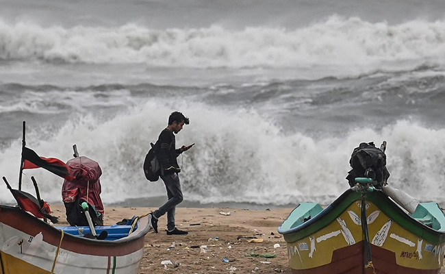 A man walks past fishing boats stationed along a beach amidst gusty winds in Chennai. (AFP Photo)