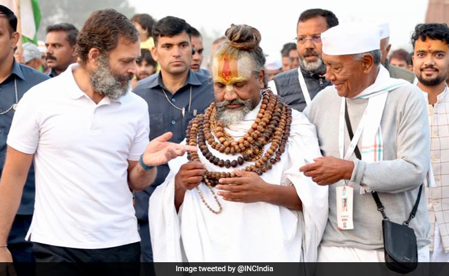 Congress's Bharat Jodo Yatra resumed from Mahudiya in Madhya Pradesh this morning. Joining the mega foot march today were senior Congress leader Kamal Nath as well as Namdev Das Tyagi, who is more popularly known as Computer Baba. Both were seen talking and walking with Congress party leader Rahul Gandhi.