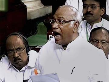 Congress party leader Mallikarjun Kharge speaks in the Lok Sabha in New Delhi on Tuesday