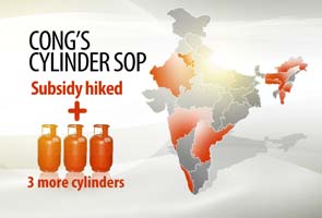 Congress-ruled states will give three extra subsidised cooking gas cylinders, the party announced today. The Congress-led UPA government had announced an annual six-cylinder cap on subsidised cylinder for every family last week.