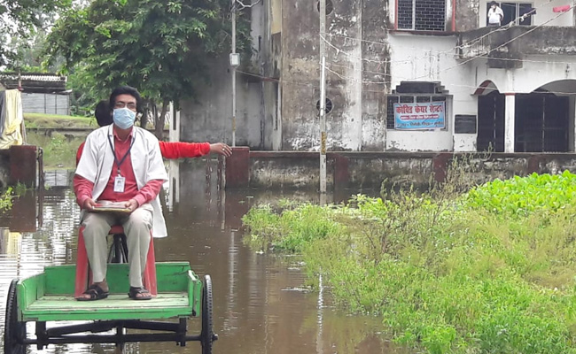 Doctors at a COVID-19 care facility in Bihar's Supaul district have been forced to rely on cycle-carts to reach the medical centre, where coronavirus patients are receiving treatment, after heavy rains left surrounding roads waterlogged.