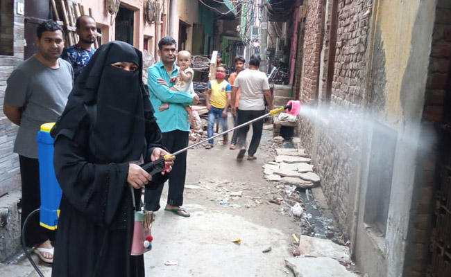 With a disinfectant spray in hand, Imrana Saifi has taken up the responsibility of sanitising several of the temples, mosques and gurdwaras lining the neighbourhood.