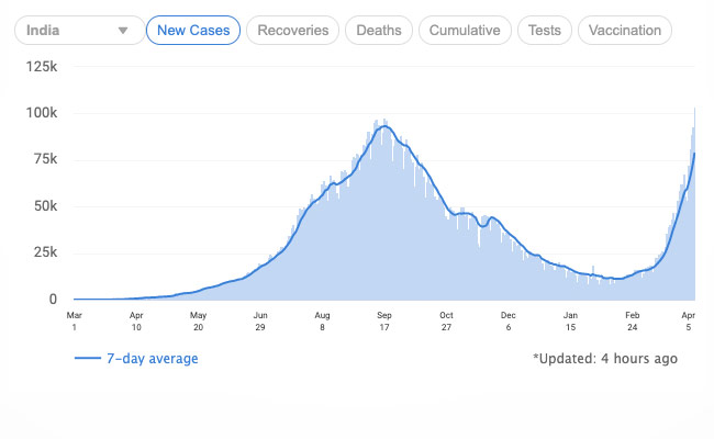 - The surge in cases comes ahead of polling in four states - Assam, Bengal, Tamil Nadu and Kerala - and Pondicherry, a union territory. The Election Commission has ensured Covid protocols are strictly followed at polling booths.