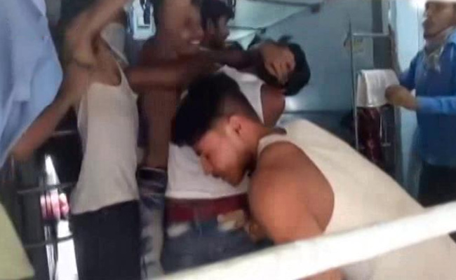 Armed with belts, migrant workers abuse and violently fight each other inside a train over food as Railway Police watch from the platform in dramatic videos that have emerged today from Madhya Pradesh's Satna. Some workers were injured in the clash.